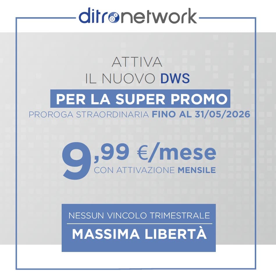 Rispetto alla precedente promozione (valida 3 mesi), la nuova formula è ancora più semplice e flessibile: puoi attivare DWS al prezzo speciale di 9,99 € al mese, con attivazione mensile e fino al 31 maggio.