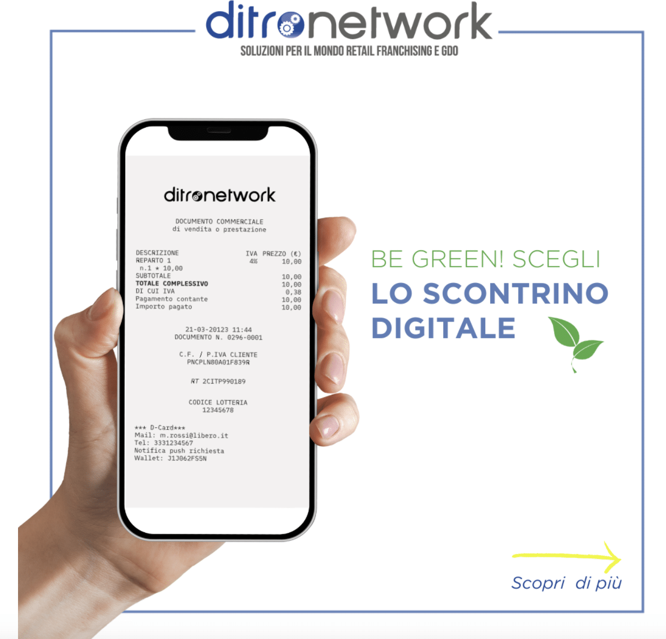 - Ambiente: lo scontrino digitale non consuma carta termica inquinante.